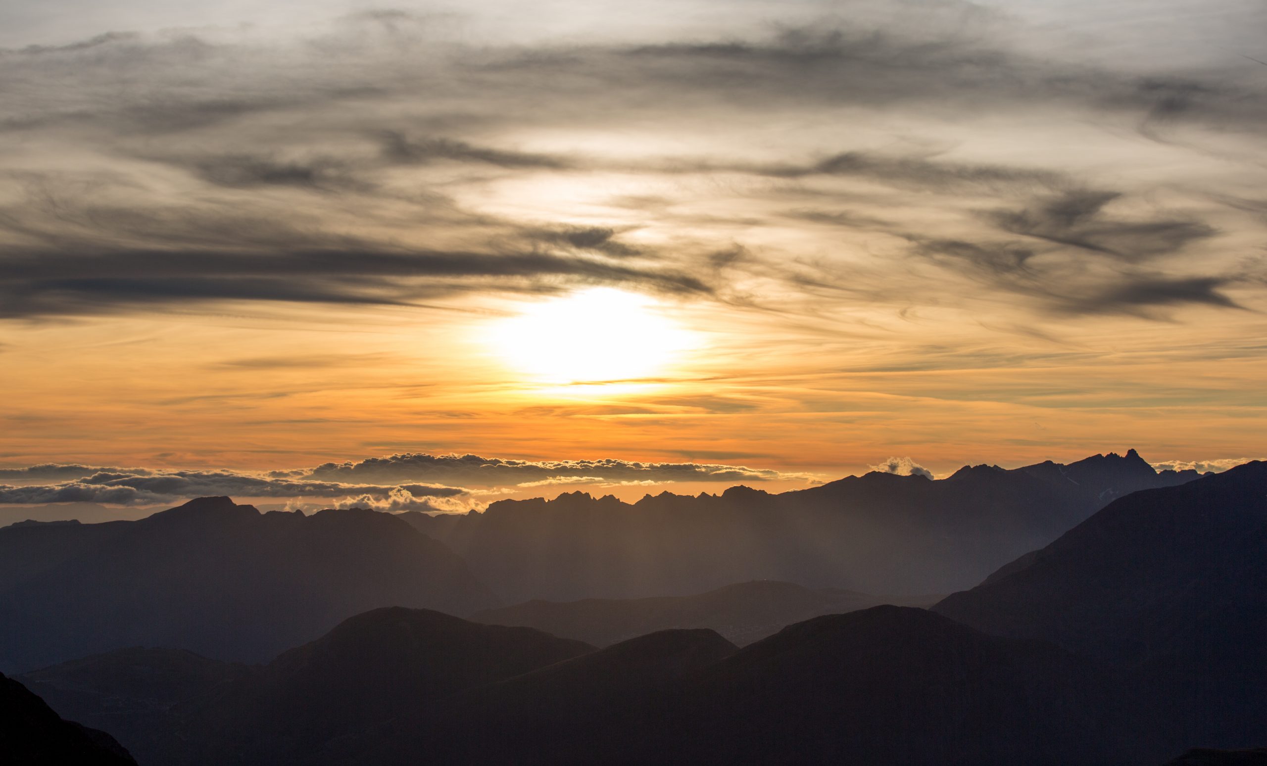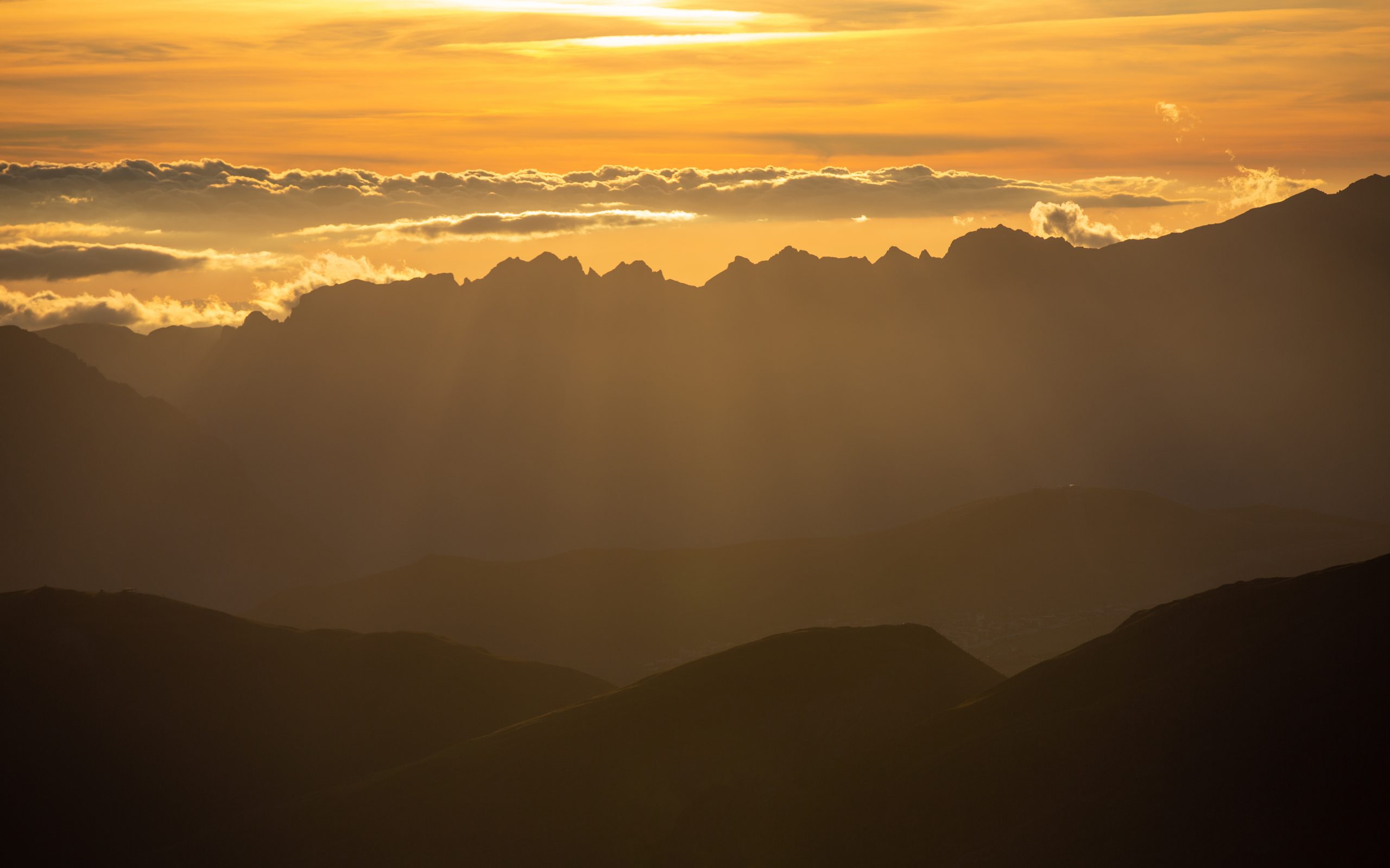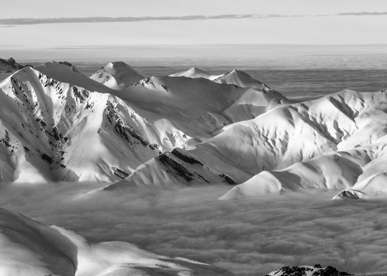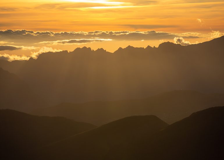 Mer de nuages et belles lumières sur le Pic du Mas de la Grave et les Pics de la Buffe