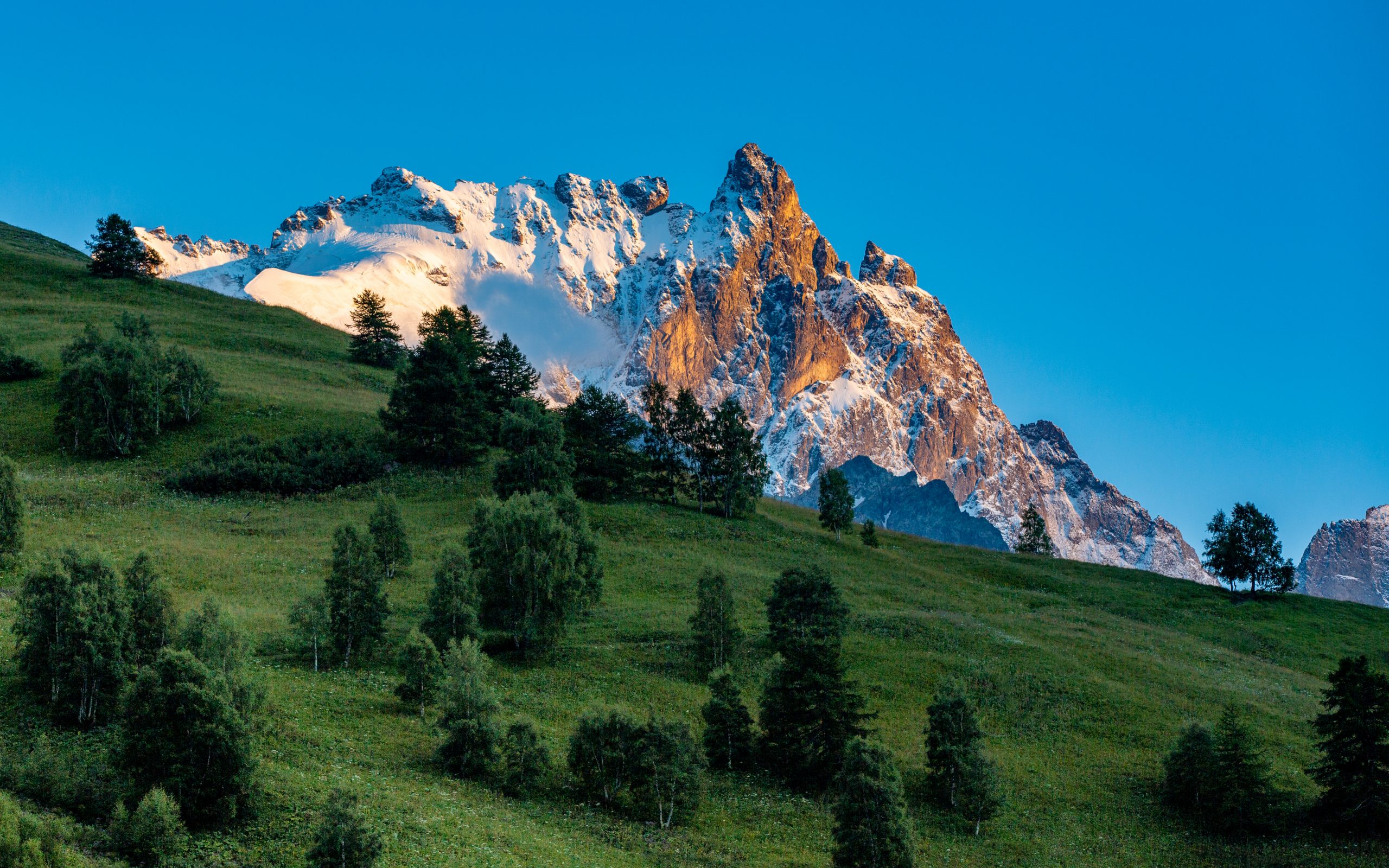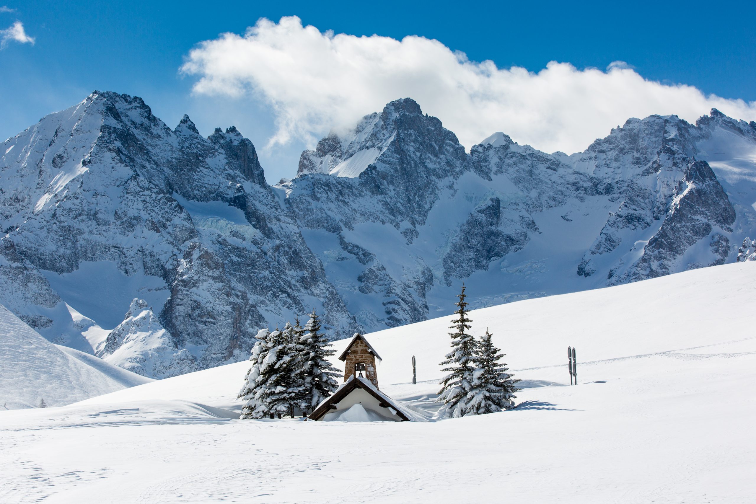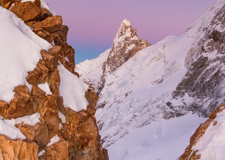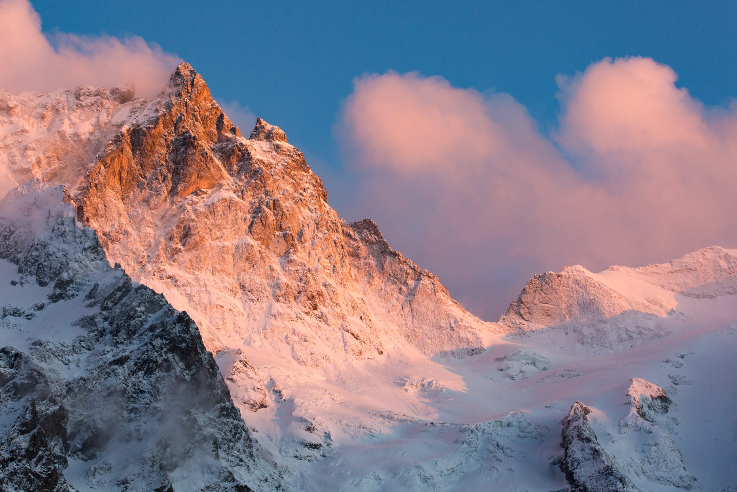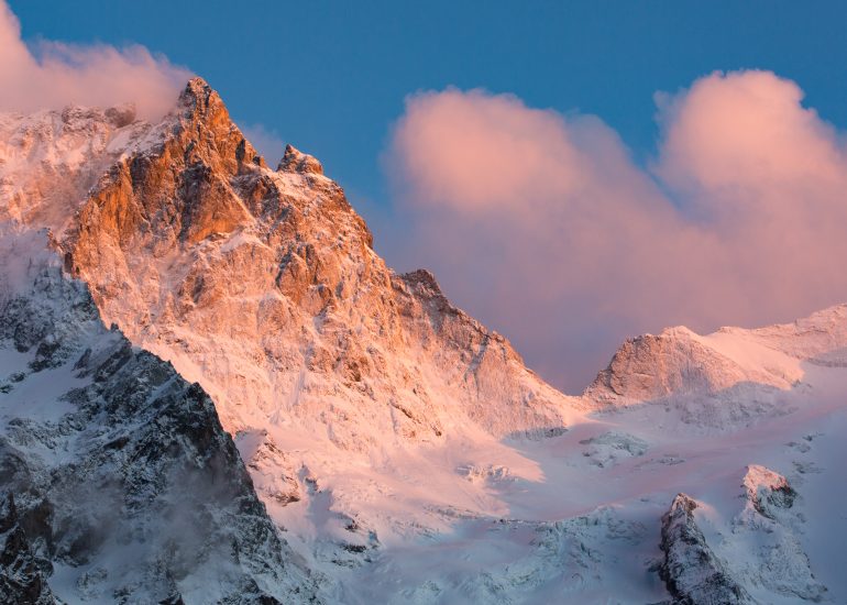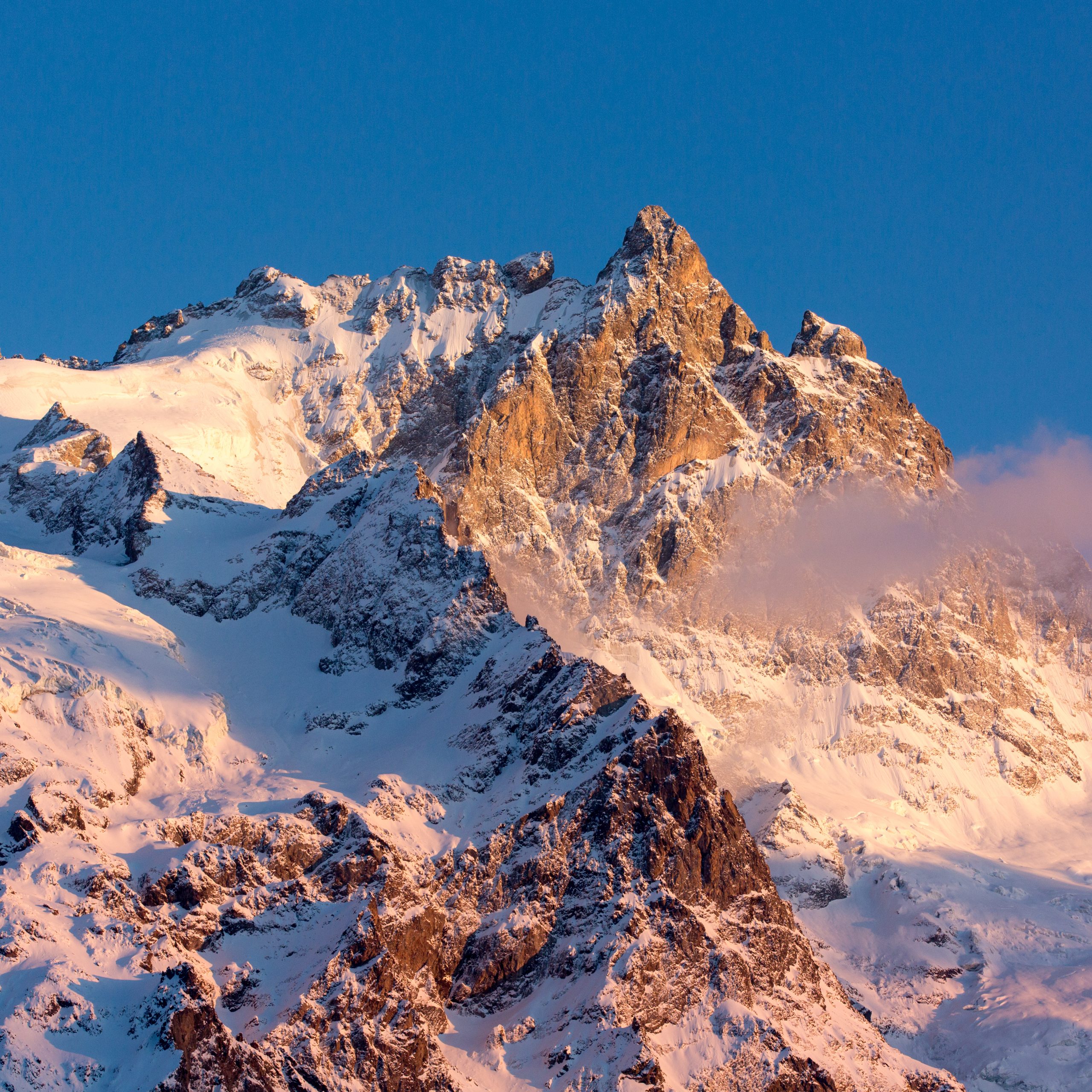 Lever de soleil sur une Meije toute saupoudrée de neige fraiche