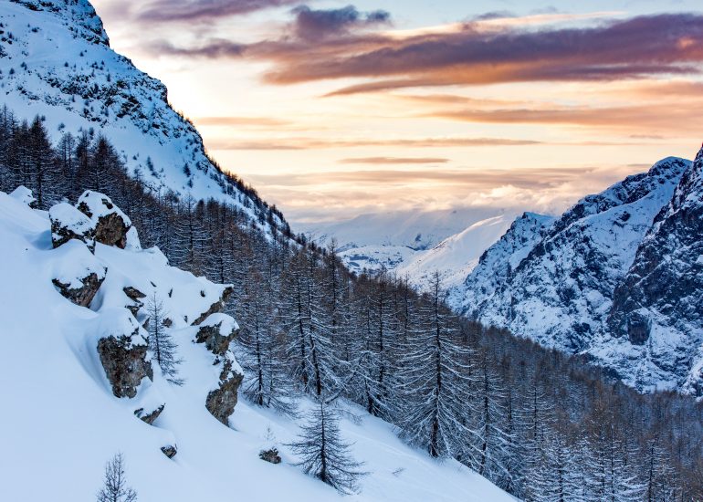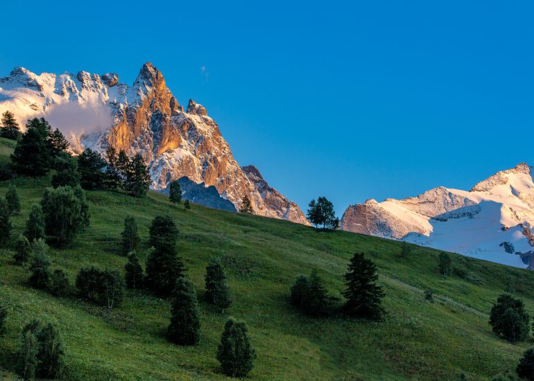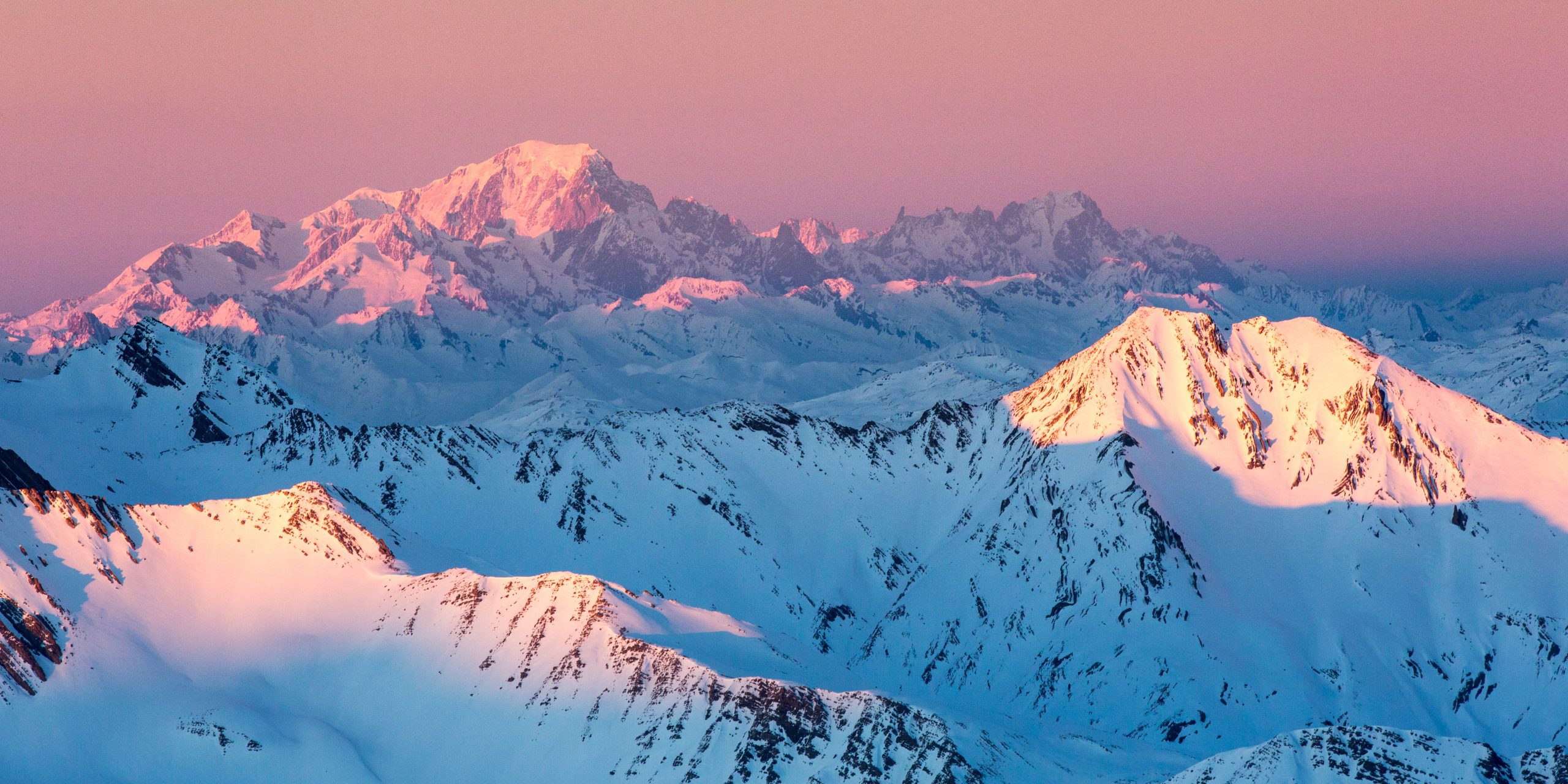 Ambiance rosée pour cette fin de journée avec vue sur La Meije