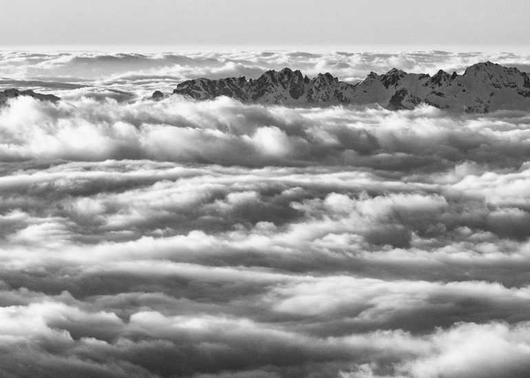La Chaine de Belledonne dépassant timidement d'une mer de nuages quelque peu tumultueuse