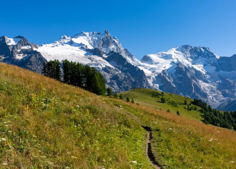 Sur le sentier de l'Aiguillon, avec la Meije en ligne de mire