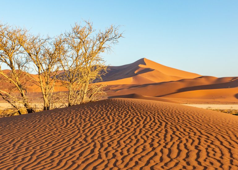 Les dunes du Sossusvlei, dans le désert de Namib. Il est considéré comme le plus vieux désert du monde et abrite les dunes parmi les plus hautes