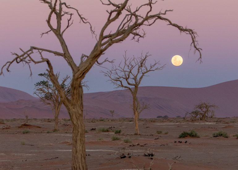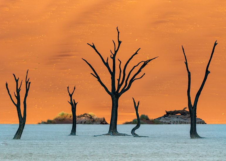 Ambiance surréaliste pour ces Acacias morts depuis plusieurs centaines d'années